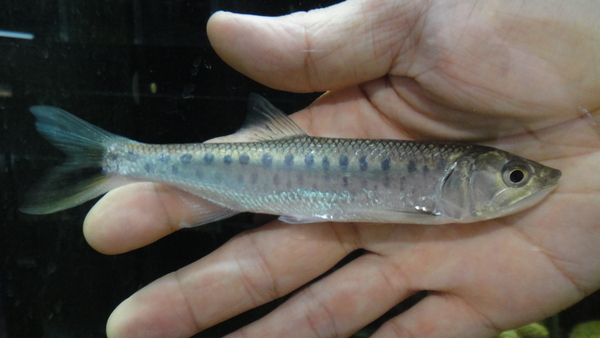 超久しぶりに入荷しました!メコンサーモンとかバーミーズトラウトとも呼ばれるメコン河のまるでサケのような雰囲気を持ったコイの仲間です。6~7年前?もっと前??は結構コンスタントに輸入されていて入荷する機会も多かったし、値段もそんなに高くはなかったんですが、ここ数年はほとんど見かけなくなっていて、個人的にはもう幻の魚になってしまったのかと思うほどでした。でも最近になって少数が輸入されたようですが値段が何万円もしてたからびっくりしました。そんなライアマスが現実的なお手頃プライスで入荷しました!フィッシュイーターなコイですが人工飼料にも普通に餌付きます。体側にはバリリウスのような模様が並びすごくキレイだし、サケのような厳つい顔が超かっこいいです!最大で35~40cmになる魚なので、デカくなったらかっこよすぎてヤバいですよ!!左下の画像です。