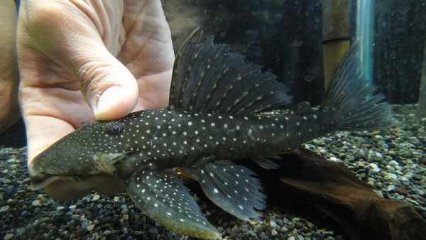 人気の全身スポットタイプのオリノコエンシスです!このタイプの入荷は稀で滅多に入って来ません!!前回入荷した時も即完売でしたので、お探しだった方はお見逃しなく!!今回問屋さんに3匹だけ輸入されたので、全部うちが仕入れちゃいました!ベネズエラからもこれと同じタイプが輸入されることがありますが、この全身スポットタイプは本当にキレイです!安い普通のオリノコエンシスもキレイで良い魚ですが、それとは全くの別物ですよ!超オススメ!左上の画像です。