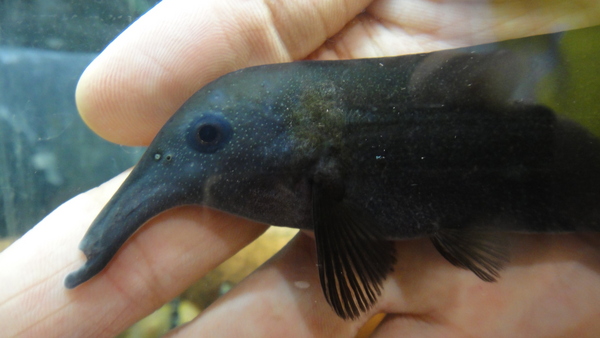 超久々!!コンゴ産ドルフィンモルミルスのカバルスが入荷です!カバルスはもう何年も入荷していませんでしたので、本当に久しぶりです!4亜種に分けられるカバルスですが、今回の個体がどの亜種なのかは分かりません。でもブムバヌス亜種なんじゃないかなというのが個人的な予想・・・。まだ小さいので何とも言えませんが、成長につれて吻が伸びて体高が出てくれば大型になるとされる基亜種の可能性もまだ捨てきれませんね!入荷は1匹のみ!この機会を逃すともう次がいつになるのか全く分かりません!ドルフィン系のモルミルスマニアの方はお見逃しなく!!