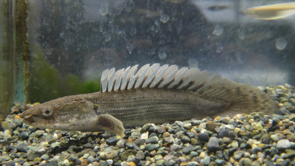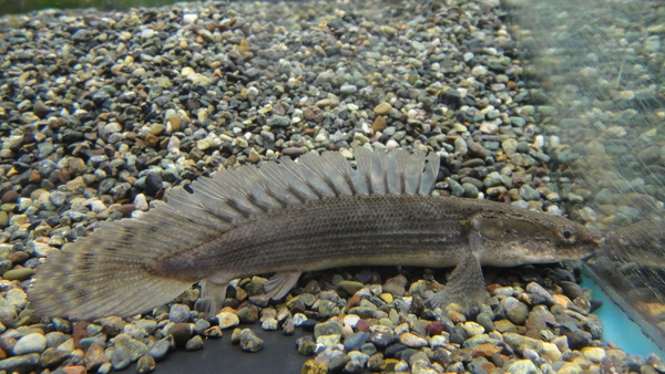 見てください!このスペシャルなヒレを!!全ての背ビレの棘が尾ビレまで1枚の膜で繋がっています!全部繋がってるからか、背ビレをたためないのか、常に背ビレ立てているのでかっこいいですよ!