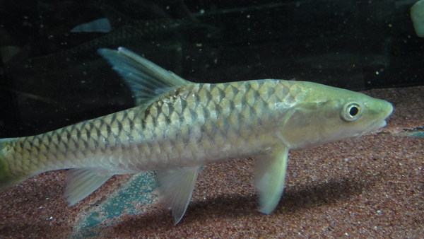 ムッスラーではないのですが、このところ現地からハンプバックマハシールのインボイスで来る魚はみんなこれです。前は普通にムッスラーが来てて、その頃はこっちがすごく有難かったんですが、ここ何年かはムッスラー全然来ないから、今はムッスラーがすごく欲しい・・・。でもこのムッスラーじゃないハンプバックも大きくなるとすごくキレイになるんです!大きくなると体が真っ青になります。水槽内飼育でもちゃんと青くなりますので大型のコイが好きな方には本当にオススメ!ここ半年くらいで2~3回入荷してますが、その前は何年も入荷がありませんでしたのでいる時が買い時です!こういうマイナーな魚は入手の機会を逃すと次がいつになるか分かりませんからね!←すいません白点付きで入荷しましたのでトリートメントしてからの販売になります。ご予約はOKですのでご注文、お問い合わせお待ちしております!