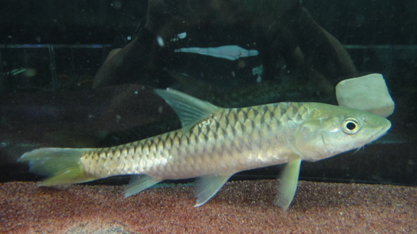 トールトール来ました!コイ科の魚は今までにも結構な数を扱ってきましたが、そんな当店でもトールトールは過去に1匹だけしか入荷したことがありませんでした。プティトラのような細身の体型で顔はアロワナカープみたいな丸顔、そんな印象の魚だったのを覚えていますが、正にそんな感じのイメージに合致するような魚が1匹だけ入荷しました!今までもトールトールのインボイスで輸入された魚は必ず仕入れてきましたがことごとくプティトラが来てましたが、これで今までのがっかりも今日やっと報われました!丸顔のプティトラみたいな魚なので正直あまりかっこよくはないです。でも過去に入荷した1匹は20~30cmあったと思いますが、光の加減で鱗が虹色に輝くとってもキレイな魚でした!見た目はかっこ悪いけどきっとキレイな魚に育ちますよ!1匹しか来てません!早い者勝ちです!!右下の画像です。