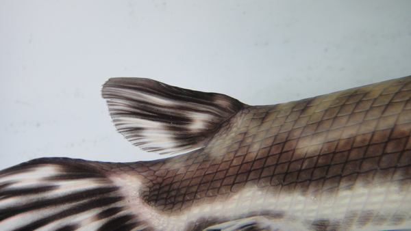 以前に当店で販売した個体をお客様から下取りさせていただきました。証明書も付いています。尾ビレの大きさ、開きも良く、このサイズでも体側にラインがキレイに残っている個体なので、さらに成長した時でもこの模様が残るのではないかと期待させられるとても美しい個体です。スポットやまだら模様の個体よりも大きくなった時にラインがキレイに出る個体の方が少ないのでコレクターやマニアの方にもオススメの1匹です。ただし残念なことに背ビレの条にほんの僅かな歪みがあります。個人的にはそんなに気にならないとは思いますが画像でご確認下さい。吻も真っ直ぐで鱗も乱れはありません。国産のグァテマラガーが入荷する予定はもうありませんので、規制前に手に入れる最後のチャンスかもしれませんよ。お探しだった方はお見逃しなく!画像は全て同一個体です。