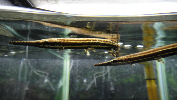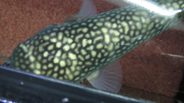 キレイなハイブリッドガーが入荷です!メス親はトロピカルジャイアントガーでオス親はチャパシウスかニカラグアのどっちかだそうです。同じタンクにチャパとニカラグアの両方のオスが入ってたのでどっちがお父さんかがはっきりしないみたいですね・・・。地の色が黄色っぽくて模様のメリハリもしっかりしているのですごくキレイな個体で将来が楽しみですね!来年の4月から特定外来生物に指定されるので、国産のトロピカルガーが手に入るのももう最後のチャンスかもしれませんね。ガーが水族館でしか見られなくなる日も遠くないと思うと淋しいですが、衝動買いとか安易な気持ちでの飼育はダメですよ!最後まで責任をもって飼育できる方にお願いしますね!左下の画像です。