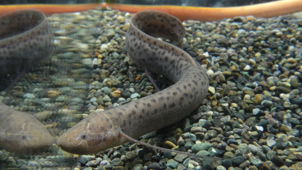 プロトプテルス属の中では大人しい個体も多く、ドロイは他の魚との混泳がうまくいっちゃうことも多々ありますね。なので店頭でもゴールデンタウナギと一緒に入れてみました。何もトラブルが起きなければいいのですが、しばらくは良く観察しておこうと思います!今回は地の色が薄くスポット模様のはっきりしたかなりキレイな個体が入荷していますので、かなりオススメですよ!左下の画像です。