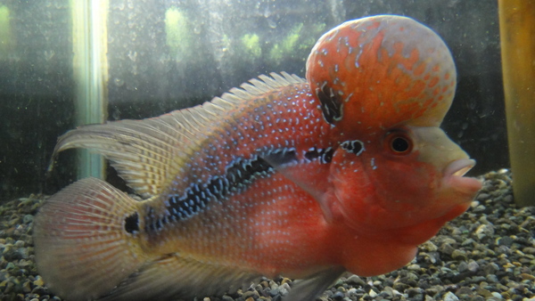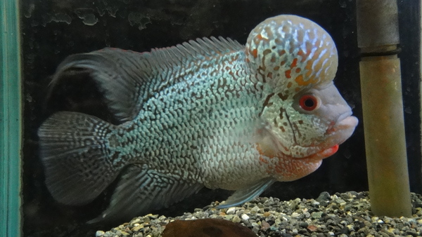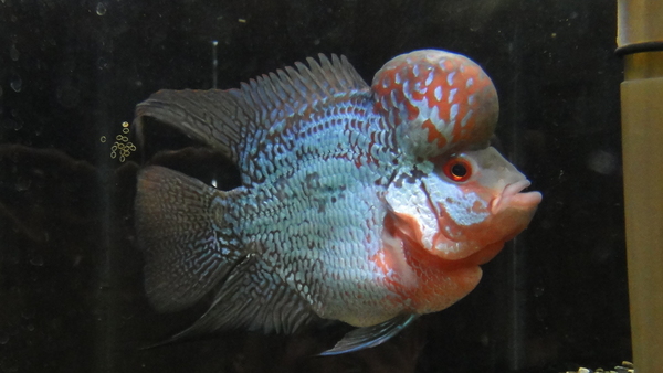 頭デカすぎ!!スーパービッグヘッドな極上個体!コブまで赤いですよ!フラワーホーンらしい赤のキレイな個体!赤いの好きな方はコレですね!!中段右の画像です。