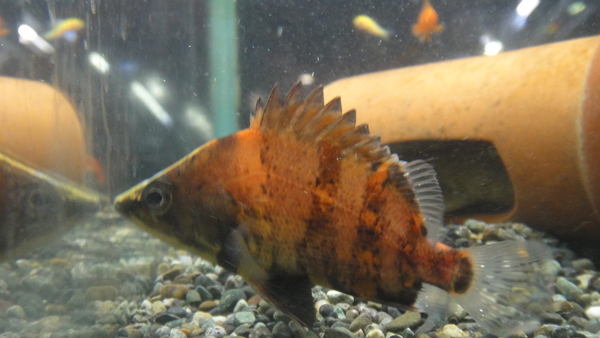 魚食性の強い魚ですが人工飼料にもすぐに餌付いてくれる飼い易い魚です。この顔付きでコイのエサとか食べちゃいますからね・・・。こいつは野生のプライドを持ち合わせていないのか!?まぁ飼う方からすればそんなプライドいらないのでありがたいことですけどね!?左上の画像です。