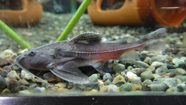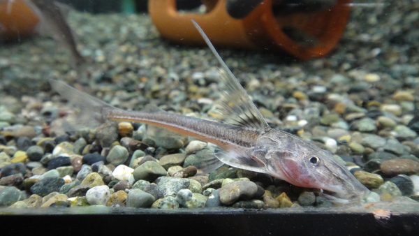 長い背ビレとスレンダーな体型が特徴のnペルー産ドラスです。導入当初はややデリケートですが一度環境に慣れてしっかり餌を食べるようになれば丈夫です!ただし、とても大人しい魚なのであんまり激しい魚との混泳はNGです!右下の画像です。