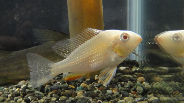 人気のアルビノヘッケリィが入荷!白くて神々しいシクリッドです。昔は高かったんですけどねぇ、今ではこんなにお手頃価格になりました!それでも大きいサイズはまだ結構高いので、こういうサイズから育てましょう!右下の画像です。