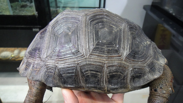 甲ズレ、多甲板、爪欠けありません!大きめでがっしりした個体です!餌食いも良好で状態は抜群です!全体のシルエットはキレイなんですが、椎甲板、肋甲板のそれぞれが平たくなってます。ワイルドのムツアシガメの大型個体って甲板が平たくなってる個体多いじゃないですか?例えるならそんな感じですね。ゾウガメにありがちな椎甲板の4番目と5番目の境目の凹みはありませんので、大きくなればキレイになりますよ!このまま大きくなっても甲板の中央の一部が平らになるだけなので、最終的には全然キレイな完品に仕上がりますよので、全く問題ありません!爬虫類はどうせ発送できませんからね、気になる方は実物を見に来てください!上段、中段左の画像です。3つの画像は同一個体です。