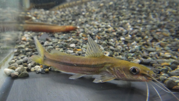 ヘミバグルスカルナリエンシスのインボイスで入荷しましたが、調べたらヘミバグルス属にカルナリエンシスという種はいないっぽかったので、ヘミバグルスspにしておきました。細長くて変わったナマズです。最大サイズなど詳細は不明ですが、性格は大人しいようで他の魚とも混泳できています!入荷は少数のみです!中段右の画像です。
