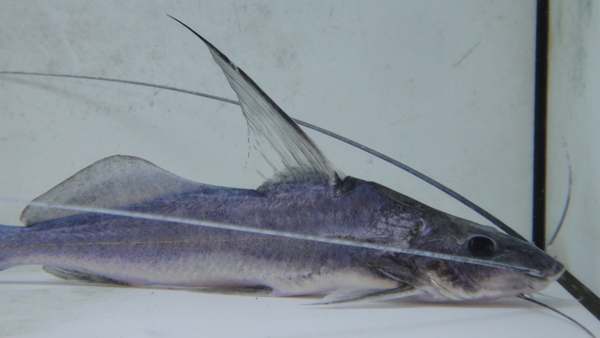 これ大好き!真っ青でビカビカの体色がすごくキレイ!背ビレが長く尖り、顔付きも精悍でシルエットも超カッコいいです!餌は人工飼料に簡単に餌付き、こんな見た目なのに生き餌とかはほとんど食べません。なので小さいサイズの魚とも混泳が可能です。最大で30cm位なのでそんなに大きな水槽じゃなくても終生飼育が可能です!他のナマズに混じって輸入される程度で、滅多に入ってきませんので欲しかった方はお見逃しなく!入荷したのは2匹のみです!中段右、左下の画像です。2つの画像は同一個体です。