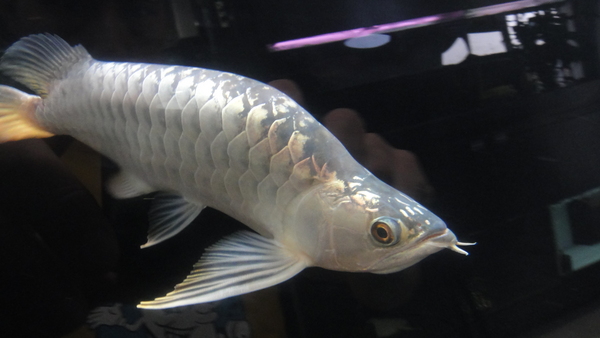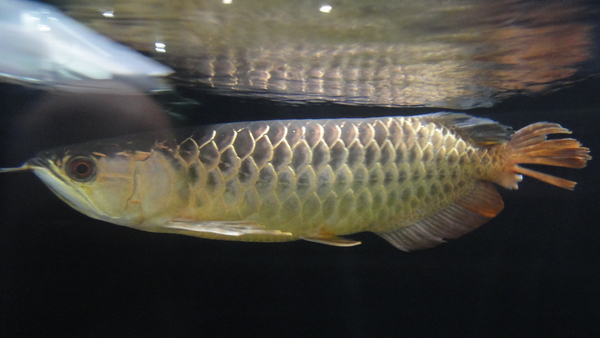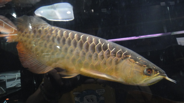 背中曲がってます・・・。発色の良い個体なので残念です。頭には金の筋が入り、このサイズですでに6列目が光って一部巻いてます。顔つきもかっこいいので本当にもったいない!餌食いとかは問題ありませんので、混泳用とかにいかがですか?上段と中段左の画像です。