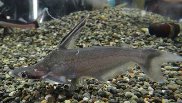 これ大好き!!長く伸びた遊離軟条がすごいインパクトで、まるで深海魚みたいです!見るからに弱々しい感じのする魚ですが、実は意外と丈夫だったりして、人工飼料にも餌付いちゃいます!もちろん純淡水でOKですよ!pHの低い古い水とか、一度に水を換え過ぎたりとかはダメですが、そういうのに気を付けてあげれば普通に飼えますよ!