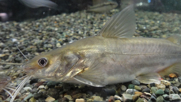 インボイスはゴールデンアリウスspだったんですが、上あごの鼻管のそばからヒゲが生えていますのでこれはアリウスではないですね。なのでゴールデンアリスではなくゴールデンシャークキャットにしておきました。シャークキャットもアリウス属のナマズによく使われる名前ですが、まぁアリウスでもないのにアリウスと言うよりはいいかなと思いまして・・・。このヒゲはアメリカナマズやギギの仲間に見られる特徴ですので、この魚はギギの仲間だと思われますが、ゴールデンアリウスと言われるのも納得なアリウスチックな雰囲気がありますね。ギギの仲間ですが性格は大人しく同種同士での混泳も全く問題ありません!ずんぐりした体型と丸っこい顔が北米のブルキャットとかチャンネルキャットみたいでカワイイですね!今回国内には10匹も来ていないと聞いていますのでとても希少ですよ!こういうのがお好きな方はお見逃しなく!!当店に入荷したのも3匹だけです!お早目に!!右下の画像です。11月17日追記:スーパーマニアなお客様から教えていただきました。このナマズはMystus gulioという中型のミスタスだそうです。最近ではほとんど見かけないとのことですので、やはりかなり珍しいナマズみたいですね!