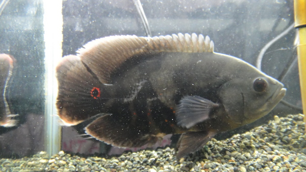 リオルビンという珍しい産地からオスカーが入荷!名前の通り尾ビレと背ビレの後ろの方の縁が赤く発色しています。体側にもポツポツと赤い発色が見られますのでこれからの発色に期待です!こういう尾ビレの縁が赤く発色してるオスカーってものすごく化ける可能性が高いです!安くはないですがかなりオススメです!中段右の画像です。