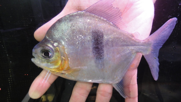 今では幻となってしまったシングーのパロットパクーのようなすごいパクーが来ました!顔は丸く、口は横に裂けていてギザギザの歯がしっかりと確認できます!シングーパロットよりも体高は低いですが、ヒレはイエローフックやゴールデンラバーのように黄色味がかり、体側には不明瞭ですが細いバンド模様が見えます。キレイで特徴的なすごく面白いパクーです!マニアの方はお見逃しなく!!左上の画像です。