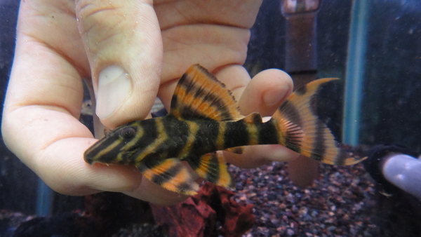 久々の入荷です!濃い赤茶色が発色する極美タイガープレコです!まだ入荷したばかりなので本来の発色ではありませんが、それでもこの赤さ!顔のラインも素晴らしいです!飼い込まれて仕上がった個体は本当にキレイです!入荷の少ないプレコですのでマニアの方はお見逃しなく!!左下の画像です。