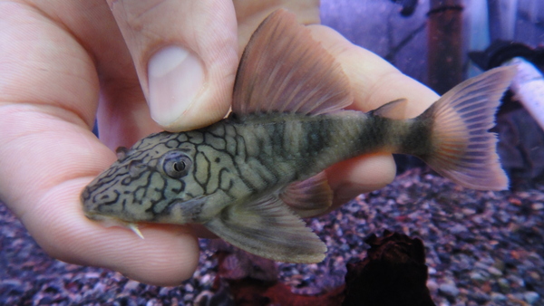 頭に網目模様が出てるのでネットワークタイガーです。タウトゥー産は初入荷かも??普通のタイガープレコよりもややずんぐりした体型でなんとなくカワイイんですよね。個人的にも好きなプレコなのでオススメです!右下の画像です。