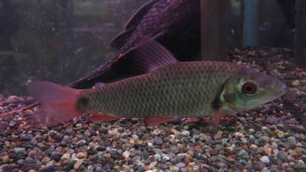 当店初入荷!これ欲しかったんですよ!深い緑がかったグレーの体色、頬はうっすらオレンジに染まり、名前の通り各ヒレは真っ赤に発色しています!体型はレポにしては丸みがあり、顔付きもなんとなく優しそうな感じです。入荷の少ない種類で、今まで自分でも飼育したことがないのでよくわかりませんが、どうも性格の大人しい種類らしいです。なので2匹入荷したのですが1匹はレポの混泳水槽へ、もう1匹はこのレポよりも小さいアイスポットシクリッドの入ってる水槽に入れてみました。レポ以外の大人しい魚ともうまく混泳できるといいのですが、しばらくは観察が必要かな??そういうわけで入荷は2匹のみです!サイズも大きめで見応えあって超オススメ!マニアの方いかがですか??左上の画像です。