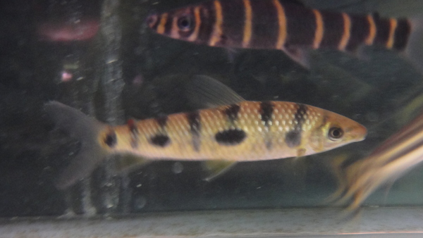 トカンチンス上流産のスポットピンクテールです。「ブラジルのシッパーの所にピンクテールカラシンがいるんだけど、もしかしたらスポットじゃない普通のピンクテールかもね?」なんていう話を輸入元の方としてたんですよね。スポットピンクが来るかもしれないリスクももちろん分かっていて、それでも輸入してくれたのですが、残念ながらハズレ・・・。スポットピンクが来ちゃいました。しかもサイズが大きいので高い・・・。でもリスクを負って輸入してくれたし、これにめげずにまた挑戦して欲しいので1匹だけですがうちでも仕入れておきました。正直この値段でも全然合わない位に仕入れ値は高いんです。でもサイズが大きいし、かっこいいですよ。それにラジェアード産のスポットピンクテールなんてすごく珍しいですよ!中段左の画像です。