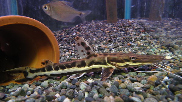 これかっこよくて良いナマズなんですが、なぜかあまり人気がないんですよね・・・。最近では入荷も少なくてあんまり入って来ないし、模様もキレイだからもっと人気があってもいいと思うんですよねぇ。サイズが小さいので今回は値段もかなりお手頃になってます!1匹しか来てませんので、気になる方はお早目に!