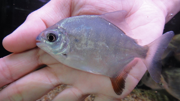 人気のレインボーパクーが入荷です!サイズは小さめですが、その分お買い得だしオススメですよ!成長につれて体色は青みがかってきてヒレの色も鮮やかになってくるので、大きくなると本当にキレイですよ!入荷は3匹のみです!いつもすぐに売り切れてしまいますのでお探しだった方はお早目に!右下の画像です。
