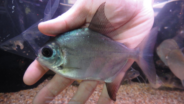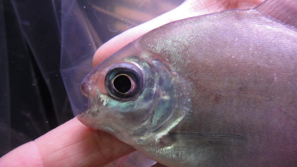 これも変わってますよ!今回アルア産のパクーは3匹入荷しましたが、この1匹は他の2匹よりも体高が低めで、やや顔が大きく、体色が黒っぽいです。赤シミも一番目立っていますね。こいつもエラ蓋の縁はカットしてありますので特別価格です!かなりオススメの個体ですので、マニアの方はお見逃しなく!!下段の画像です。2つの画像は同一個体です。