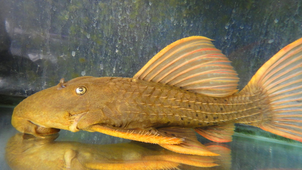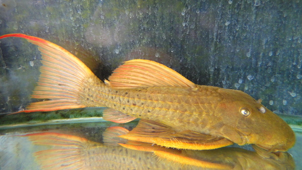 デカいです!尾ビレの先まで入れれば余裕で40超えです!色がとんでいますがしばらく飼い込んで落ち着けばかなりキレイな発色をしてくれそうです!胸鰭のトゲも強烈ですごくかっこいい個体ですよ!このサイズでこの値段はかなりお買い得ですよ!中段の画像です。2つの画像は同一個体です。