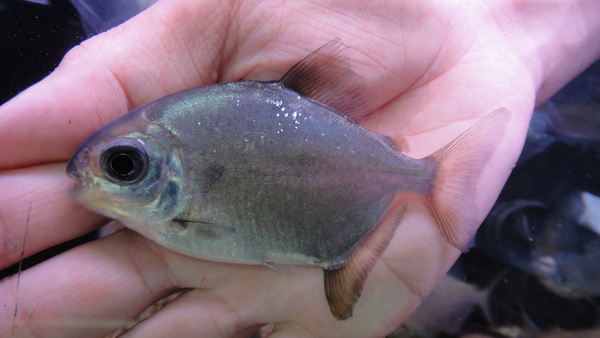 同じ産地のアリノスからきた少し小さめサイズのパクーです。こっちは目が小さく顔はやや尖り気味、体高は低く特徴的な体型をしています。画像では分かりにくいかもしれませんが全体的に黄色っぽい体色で臀ビレが赤くなっている個体と、体色の黄色味が弱く臀ビレが黒い個体がいます。この違いが個体差のレベルのものなのか、別種なのかは不明ですが、見比べれば違いの分かる2タイプが入荷しております。どちらも1匹ずつの入荷です!貴重なパクーですのでこの機会をお見逃しなく!右上の画像が9cmの個体で、中段左の画像が8cmの個体です。