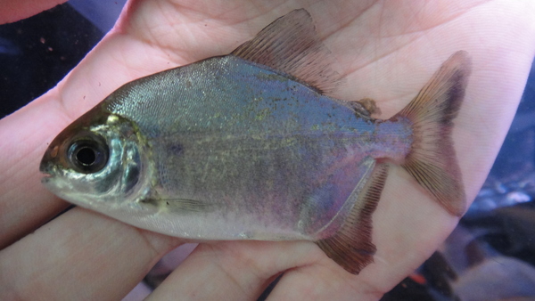 とんでもない秘境から謎のパクーが入荷しました!アリノス川というのはタパジョス水系の最上流域の支流になります。タパジョス河は上流域でまずテレスピレス河とジュルエナ河にわかれます。そのジュルエナ河の上流部でさらに分かれた支流がアリノス河になります。こんな最上流部の細い支流から魚が来ることはほとんどありません!なので今回のパクーも次回の入荷は全くの未定です!今回ごく少数が輸入されたアリノス産のパクーのうち、1匹だけ明らかに種類が違うと思われる個体が混じっていたのですが、それがこの11cmの個体です。目が大きくラバーアスーのような顔ですが、口元は横に大きく裂けていて鼻先は丸く、ラバーアスーとドルフィンパクーを足して2で割ったような不思議な個体です。パクーマニア必見です!こんなのもう2度とお目にかかれないかもしれませんよ!?左上の画像です。