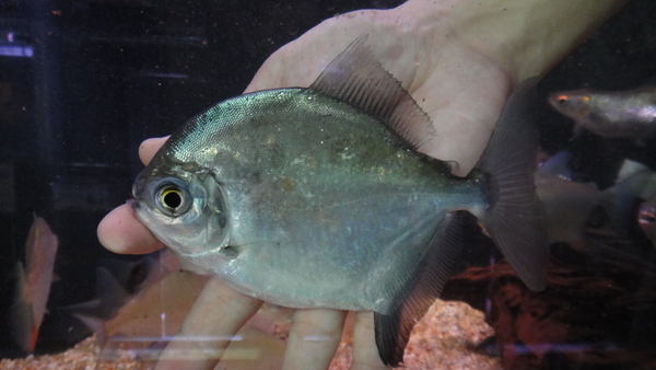 1~2か月前にイエローフィンカラックスのインボイスで入荷したカメタ産のカラックスがいましたが、多分それと同じやつの小さい個体だと思います。まだ前回入荷した大きい個体ほどヒレの色ははっきりしていませんが、それでもうっすら黄色っぽいようなオレンジ色っぽいような感じはしますので、成長につれてヒレの色も鮮やかになってくれると思います!今回はサイズが小さい分前回のよりだいぶお買い得です!南米牙カラシンのマニアの方はお見逃しなく!!左下の画像です。