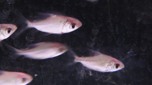 ヒラスズキってもう普通に海水魚ですね・・・。でもスズキもそうですが、餌の小魚を追って純淡水の河川の中流域位まで普通に上がってきたりするんですよね!なので上手に慣らせば塩分濃度の薄い汽水でも全然飼えちゃったりするんですよね。うちの店の近所でも普通に釣れたりするので仕入れるのもどうかなと思ったんですが、淡水に近い水に慣れてるのはいいなぁと思いつい仕入れてしまいました。ヒラスズキということで入荷してますが、背中に黒いスポットが入っていてタイリクスズキみたいな雰囲気もありますね!ヒラの割には体高が低い個体ですが、鋭く尖った顔とトゲトゲしい背ビレが超かっこいいです!パーチ好きの方は絶対ハマりますよ!!これも上記の淡水ウツボと同じでかなり薄い汽水でストックしてます。