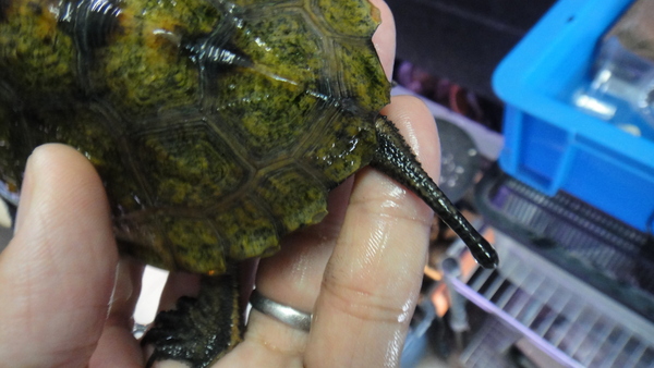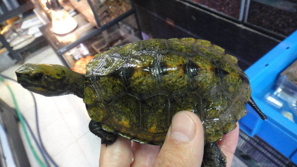 もう1匹来てますが、こっちは残念なことにほんの少しだけ尾切れです。それ以外に欠点はなく、甲羅も黄色がキレイな美個体です!尾切れにつき超激安です!早い者勝ち!!下段の画像です。2つの画像は同一個体です。