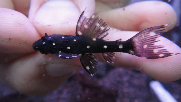 ペルー産のブラックジャガーと呼ばれるタイプのジャガーキャットです。ブラジル産のスカイブルーキャットと呼ばれるジャガーキャットとは違い、細かいスポット模様が特徴です。ブラジル産スカイブルーよりは地味ですが、ペルーのブラックジャガーもかわいくて良いナマズですよ!