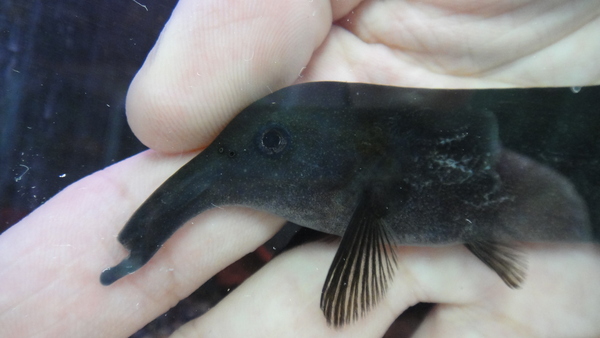 アラグアイア産のミロソマ入荷です!ミロソマって小さくても結構高いんですけどね、今回はお買い得だと思います!まだ5cm位しかないですが、すでに臀ビレは鮮やかなオレンジに発色していますのでこれからどんどんキレイになってくれるはずです!貴重なアラグアイア産ですのでマニアの方はお見逃しなく!!中段右の画像です。