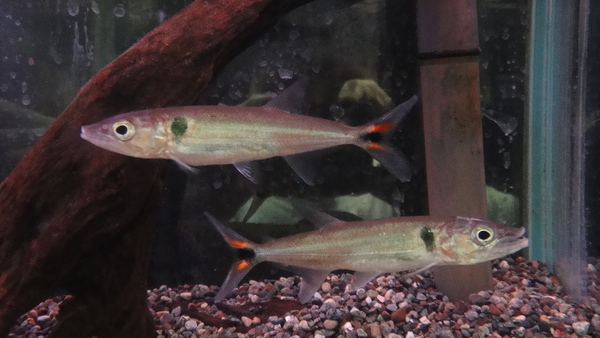超激レア!!トカンチンス河上流のラジェアード産トーピード入荷です!今回国内に4匹しか輸入されませんでしたので全部仕入れておきました!!なのでこの魚はうちにしかいませんよ!南米牙カラシン、中型カラシンマニアの方は必見!!まだこのサイズなので尾ビレ全体が赤いわけではありませんが、発色部分の色は濃くこれからどんどんキレイになってくれるのは間違いないでしょう!トカンチンス産のこのタイプのトーピードは飼い込むとエラ蓋後方にある濃い緑のスポットが金色のラメ状の発色で縁取られ、かなりキレイになるらしいです!12cm位のが2匹と10cm位のが2匹来てます!次回入荷は未定!お見逃しなく!!上段の画像です。左上が12cm位の個体で、右上が10cm位の個体です。