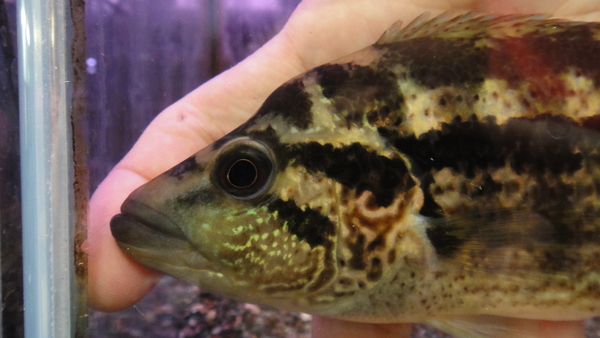 マナグエンセのゴールドは先日小さいのが入荷しましたが、大きめの個体も入荷しました。大きくなるとどんな風になるのか気になっていましたが、答えがわかりました。ベビーは無地だけど成長すると普通にマナグエンセの模様は出るんですね。地の色は淡い金色で、模様の色も少し薄い感じです。上品な美しさのあるシクリッドですね!