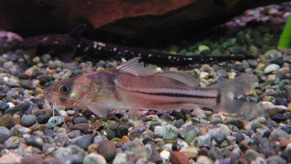 けっこう前にも入荷したことがありましたが、今回久しぶりの入荷です!バイオレットインパルフィニスみたいな雰囲気のスレンダーでかっこいいナマズです!大きくなる種類ではありませんが、こういうマニアックなのが好きな方も結構多いのでは??中段右の画像です。
