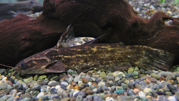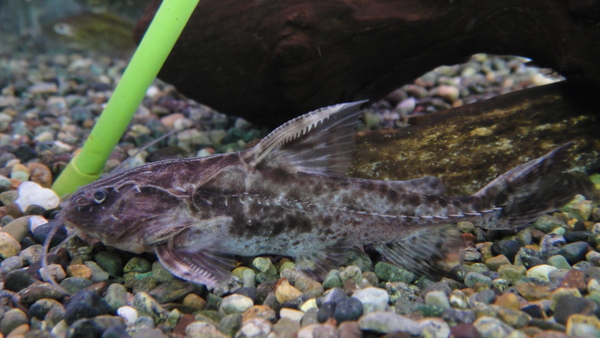 ちょっと塩の入った薄い汽水でストックいています。問屋産でしばらくの間ストックされていたので良く太っていて状態は良好です!この手の汽水ナマズにありがちな痩せや着状態不良などは一切ありません!ちょっとマニアックなナマズですがオススメですよ!