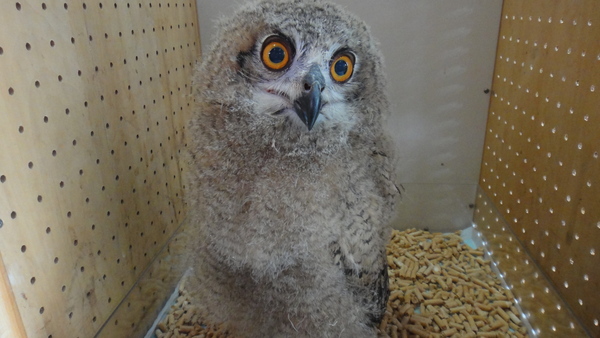 今年の春産まれのベンガルワシミミズクが入荷です!まだ綿毛の残るポヨポヨのかわいいヒナです!もともとフクロウの中でも特に良く馴れる種類ですが、ヒナから飼えば超ベタ慣れ間違い無しです!国内ブリードですから状態も心配ありませんし、餌食いも良好です!まだ綿毛のヒナですが餌はもう朝と夜の1日2回でOKですので昼間はお仕事で家にいないという方でも問題無く飼育できますよ!さすがに1日に3回も4回も餌をあげなくてはならないような小さいヒナでは飼育も大変すぎですからね・・・。大きすぎず、小さすぎず、存在感のあるキレイでかわいいフクロウです。オレンジの目に羽角(耳毛みたいな飾り羽)などうれしいオプション満載で見た目もキレイで性格まで大人しく馴れやすいなんて言うことなしです!訓練次第ではフリーフライトも可能な種類です!こんなの連れて外に散歩に出かけたら人気者間違いなしですね!?