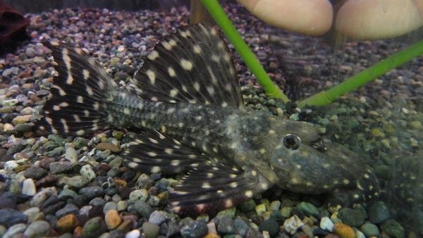 やや体高があり、背中に細かい縞模様がでるタイプのスリースポットアノストムスです。背ビレや尾ビレは赤く発色しています。産地によって若干の違いがあるようで、もっと細身のやつとかがくることもありますね。