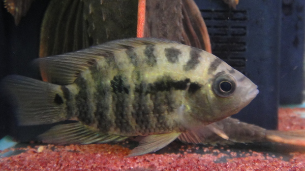 マラタイゼからチャンチトー来ました!地の色が金色で、そこに青いバンド模様の入るとても美しいシクリッドです。入荷は結構久しぶりで、見る機会は決して多くない魚ですので、マニアの方はお見逃しなく!!