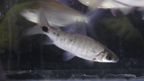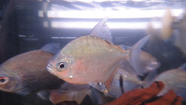 Distichodus sp cf brevipinnisのインボイスで入荷したナイジェリア産の激レアディスティコダスが入荷です!本物のブレビなら成長につれて肩の辺りからぐんと体高が出てきて、最大で60cm位になるらしいです。正直この魚の情報が少なすぎて詳しいことはよく分かりませんが、とにかく珍しい魚だということは間違いないでしょう?!現状は灰緑色がかったシルバーの体色に黒っぽいバンドがうっすら入り、尾筒には黒いスポットが入ります。スポットの上は光の加減でホタルテトラのように金色に光ったりします。渋い体色ですがとってもキレイでかっこいい魚です!アフリカンカラシンのマニアの方はお見逃しなく!!1匹のみです!右上の画像です。