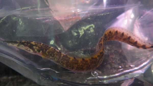 とても珍しいニホンウナギの色彩変異個体です。白地に黒いまだら模様がとってもキレイです!今回入荷したのは白勝ちでとても派手な個体ですよ!流通量は少なくたまにしか来ませんのでお探しだった方いかがですか?