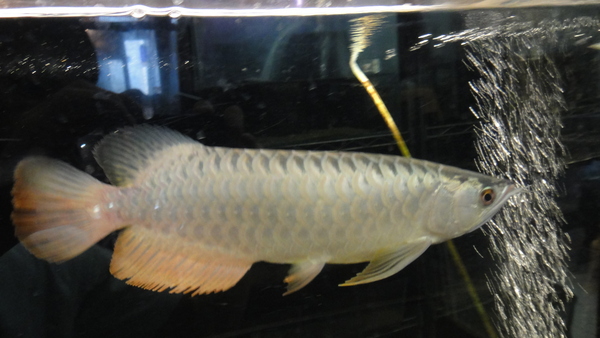 超極上の過背金が入荷です!!すごい発色で25cmにしてすでに6列目まで金が巻いちゃってます!グリグリで完璧に仕上がってますね!!フルゴールデンヘッドではありませんが頭に入る筋はしっかり光っています!もちろん欠点もありませんよ!目垂れ無し!エラ捲れ無し!アゴズレ無し!完品です!!顔付きも尖り気味でかっこいいし、体格もがっしりしています!餌食いも良くワームやコオロギ、小赤、なんでもバクバク食べてます!ハイレベルな過背金ほど神経質な個体が多かったりしますが、この個体からは神経質さなんて微塵も感じられません!!こんなに素晴らしい個体なのにこの値段は絶対に激安ですよ!うまく写真が撮れなくて画像ではあまりキレイに見えないかもしれませんが、実物は画像よりも全然良いですよ!