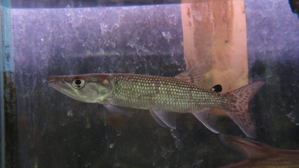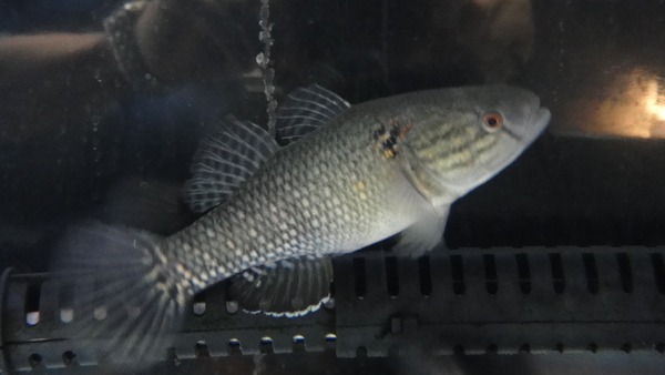 グルピ川の支流トゥリアス川から謎のパイクシクリッドが入荷です!やや短めの詰まった体型で、ころっとした体型がかわいいです!顔は丸味を帯びているようですが下アゴが突き出ているので精悍な印象も受けます。また、目がとても大きいというのもこの魚の特徴だと思います。詳細は不明ですが、体型や顔つきからレティキュラータグループのパイクシクリッドのように感じますがいかがでしょうか?入荷は1匹のみです。かなり変わった魚だと思いますのでマニアの方には特にオススメですよ!右上の画像です。