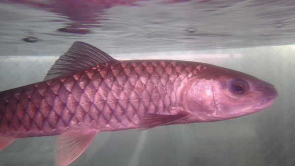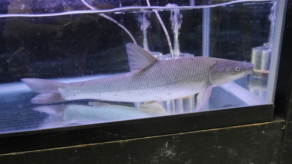 Coreius heterodonのインボイスで輸入された当店初入荷の中国産超激レア鯉です!鋭く尖った顔つきとスマートな体型がすごくかっこいいです!しかもサイズがでかくてすごい迫力です!!ヘテロドン種は1対2本のヒゲがある魚ですが、今回入荷した個体は2対4本のヒゲがありますので、こいつはヘテロドン種ではないですね。でも普通のヘテロドンでさえ国内には数えるほどしか輸入されていないはすですので、今回入荷したタイプは国内初入荷かもしれません!!詳細については輸入元の方でもいろいろ調査中らしいのですが、この魚は野生では2m近くにまで成長するらしいです!信憑性のほどは不明ですし、水槽内でどれくらいまで育つのかもわかりませんが、こういう謎の魚はマニア心をくすぐりますね!?見た目のインパクトのある魚でまだ見たことのなかったこんな魚が入荷するとワクワクしますね!アジア産コイ科魚類のスーパーマニアの方いかがですか?今回国内にもごく少数しか輸入されていない超希少な魚ですし、こんなマイナーな魚もう2度と輸入されないかもしれませんよ!?このサイズで輸入された個体ですので、ヒレ裂けやスレなど多少のキズはご了承下さい。致命的なキズや欠点はありませんのでしばらくで治っちゃうと思いますけどね。上段、中段の画像です。4つの画像は同一個体です。