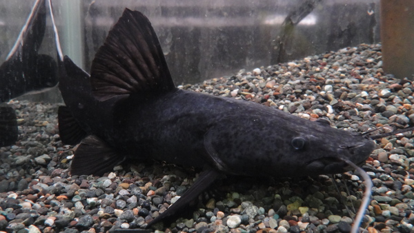 久しぶりに仕入れちゃいました。結構有名なナマズですが意外と入荷は少なくなかなか手に入らないんです!シルエットのとてもキレイなナマズで、体型、顔つき、ヒレの大きさ、バランス、どれをとってもすごくカッコいいナマズだと思います!体色も派手ではありませんが、真っ黒な体に尾ビレの上下が真っ白でシックな色合いはとても魅力的だと思います!そんな良い所だらけのこのナマズにも唯一とも言える欠点がありまして・・・、性格が最悪です。超凶暴なのでその辺ご理解いただける方、ご注文お待ちしております!!右上の画像です。