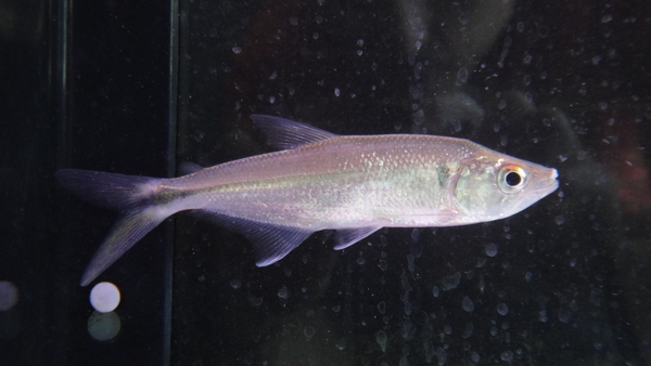 小さいですがちゃんとマハシールです!成魚の鋭く尖った顔つきとシャープな体型はコイ科魚類の中でも1、2を争うかっこよさだと思います!低温にも強くとても丈夫で飼い易いです!